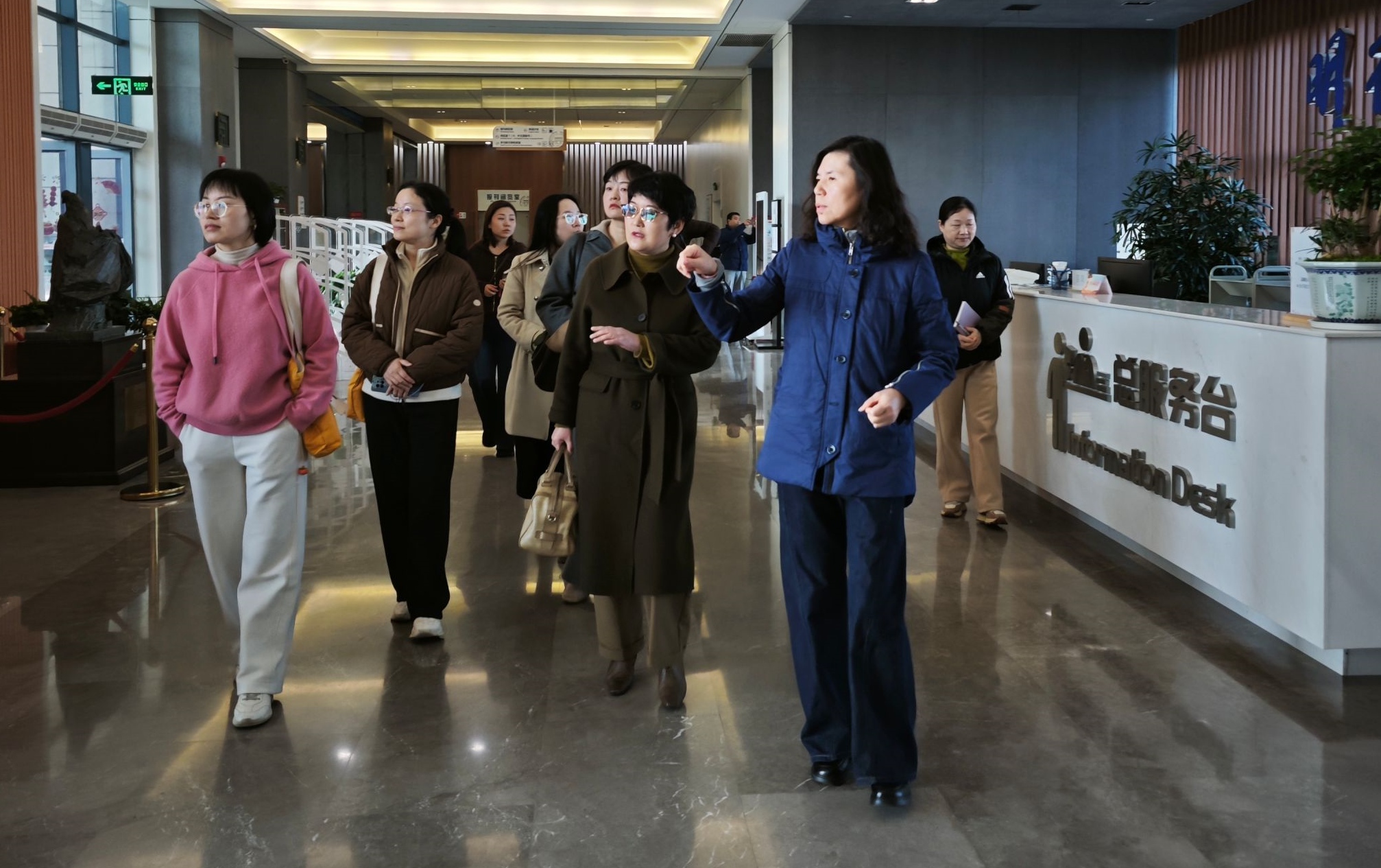 在温爱莲的陪同下,刘红一行首先参观了图书馆的整体环境。实地走访了图书馆各楼层学习空间及特色区域,详细了解了各功能分区的设计理念、空间利用效率及读者服务情况。