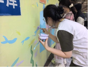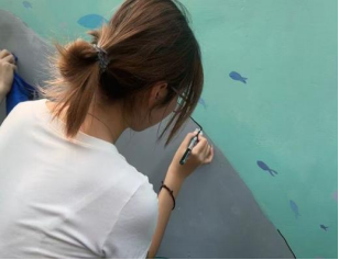 为确保活动有序高效开展,团队负责人提前与沧海社区工作人员开展对接,通过实地勘察、需求沟通,确定待绘墙面位置及创作方向,细化方案、筹备物料,为活动落地做好了充分准备。活动当天,参与志愿者充分发挥专业所长,分工协作、高效推进,将长江江豚、岸线绿植、水生生物等生态元素融入创作,以细腻笔触、鲜明色彩,为社区老旧墙面赋予新的文化内涵。