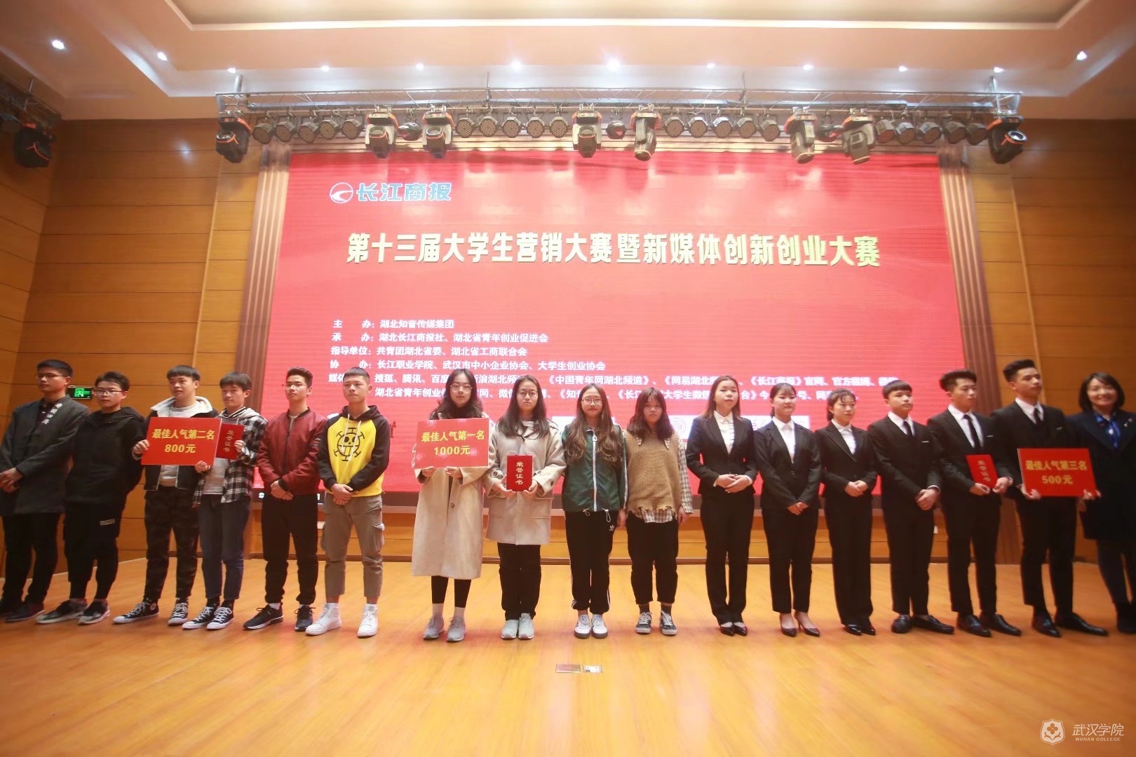 除此之外,在本次大赛中我校获得大学生先进活动单位称号,刘颖老师荣获最佳指导老师奖,组织者陈锐获得最佳组织奖。校区奖上‘菜鸟队、GSA队、您买就队’荣获武汉学院校区一等奖,‘百事特乐队、桂武鹿苑队、武院最强小队、瑞旗( rich) 队、神秘销售队、征不一young队、发大财队、忆城队’荣获武汉学院校区二等奖。