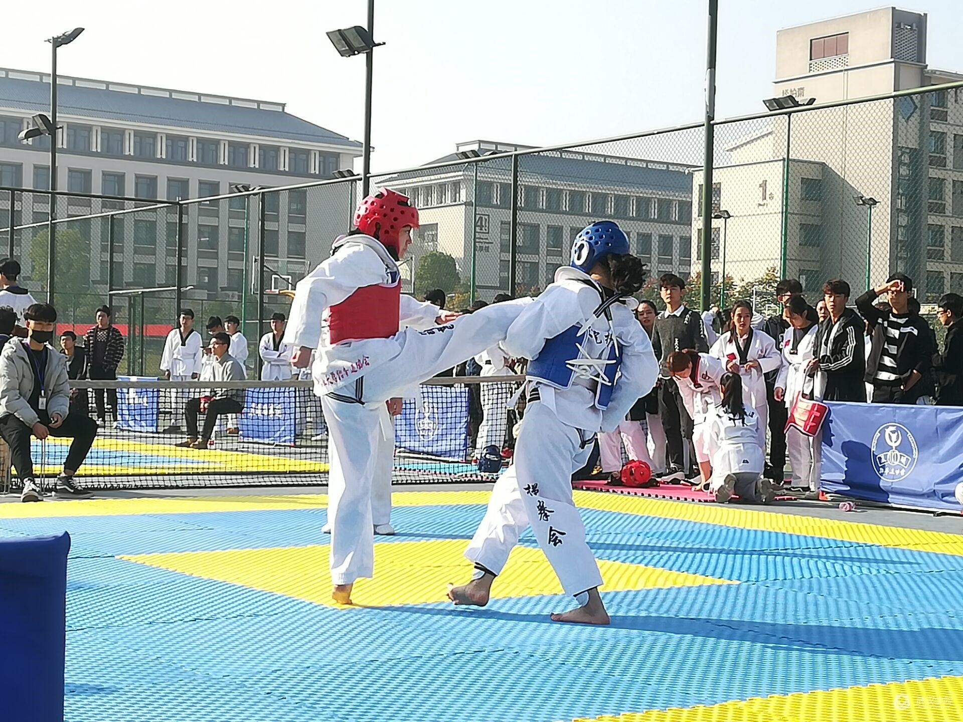 女子组在比赛中毫不逊色,在华中农业大学和我校的女子组对决中,我校学生冯欣妤在面对身高和力量略胜一筹的对方时,充分发挥腿的威力,用跳、踢、击打、挡、躲等动作,做出最大打击的技术,赢得在场观众阵阵掌声。比赛过程中现场围观人员呐喊声不停,纷纷为参赛人员加油打气。