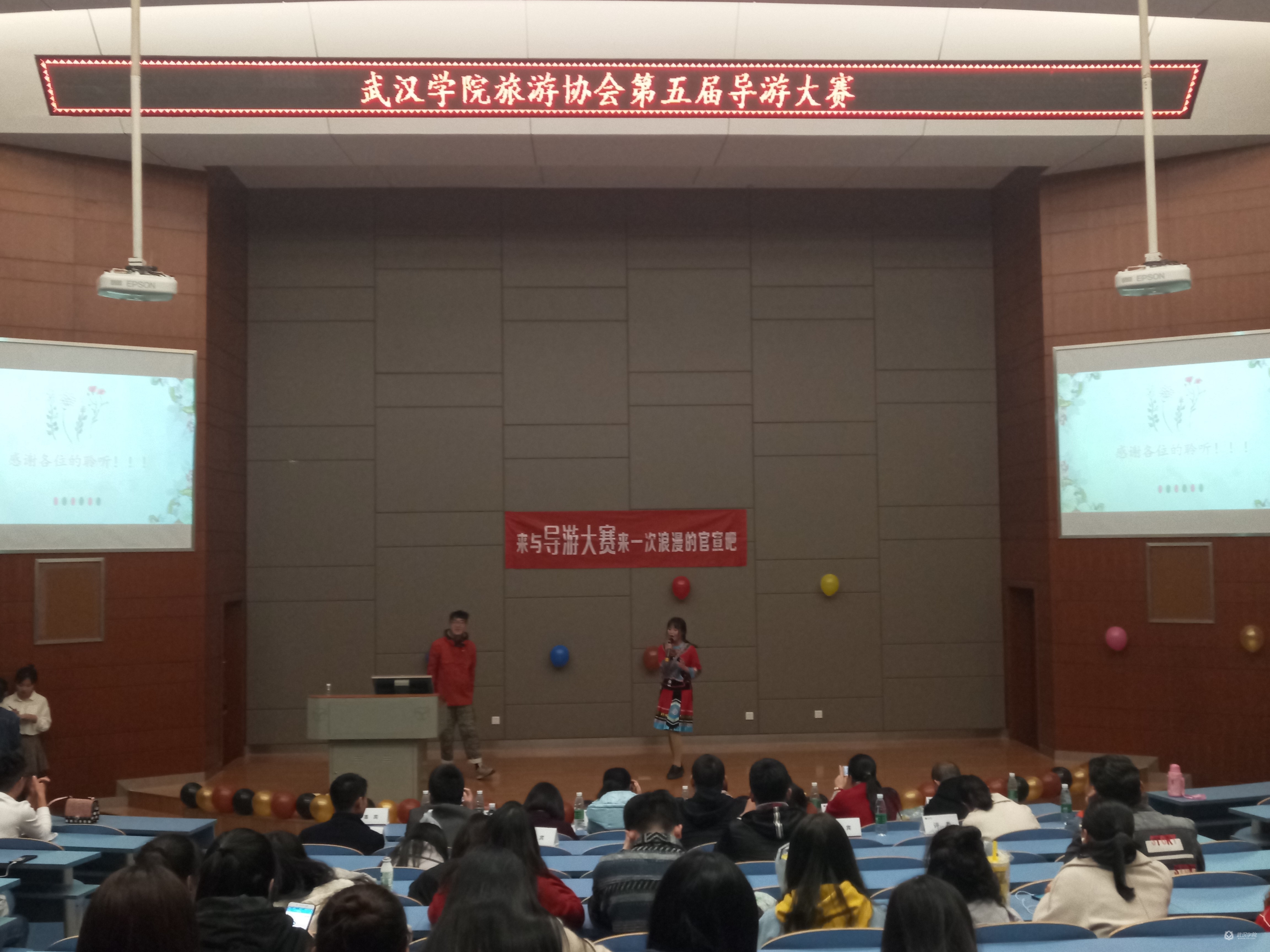 11月21日晚18:30,由我校旅游协会主办的“秀美湖北”导游大赛决赛在中央教学楼2103举行。经过前期初赛和复赛的选拔,最终有十位选手突出重围,进入了本次决赛。我校工商管理系副主任韦玮老师,工商管理系党委副书记肖琴老师、工商管理系系办主任周桂霞老师等莅临本次比赛。