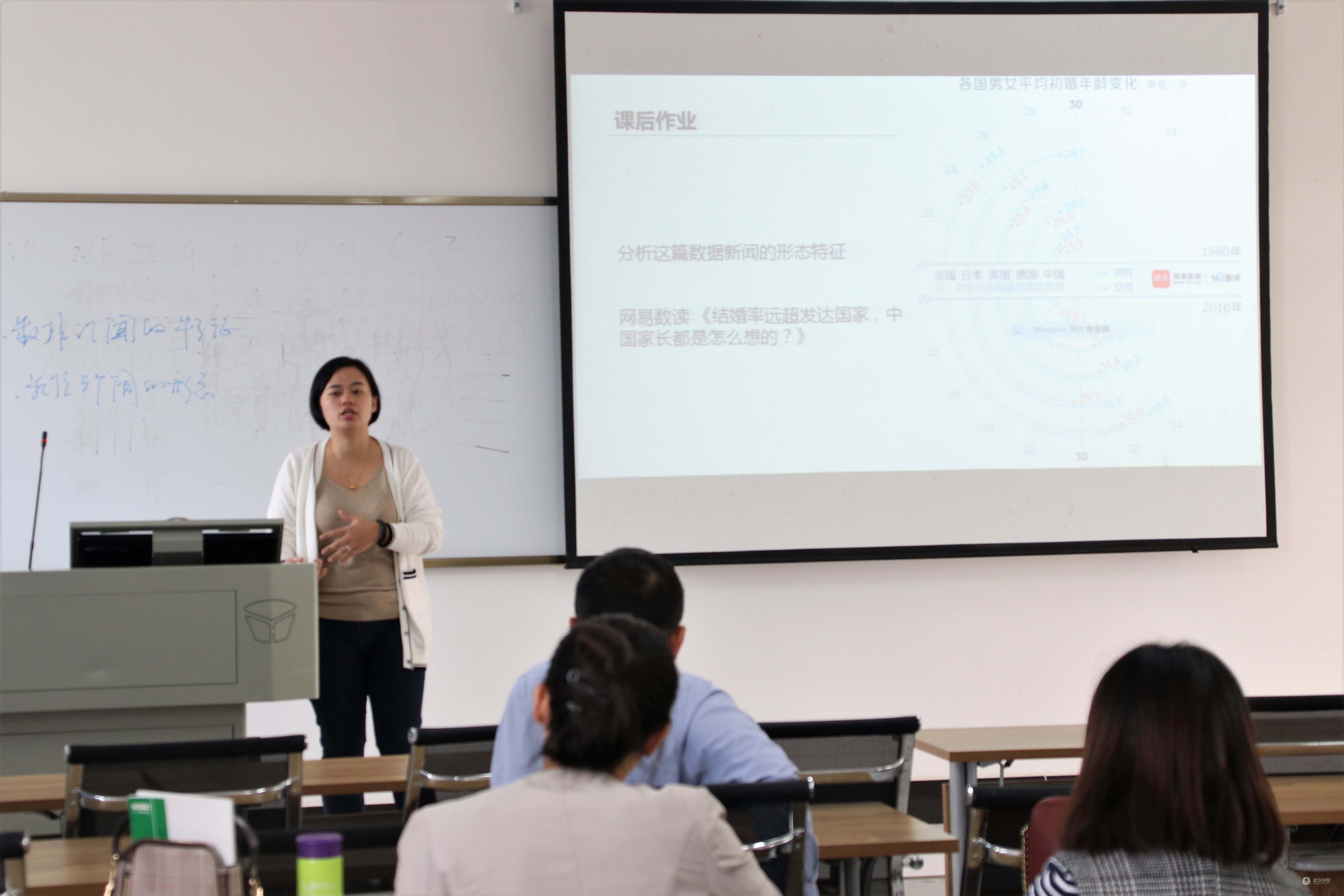 经过前期的听课选拔及教案检查,此次传播系推荐谢光玉老师作为代表参加校级讲课比赛。在初赛环节,谢光玉老师对比赛细节做了介绍,并以“数据新闻可视化”作为主题,进行了模拟课堂讲解。