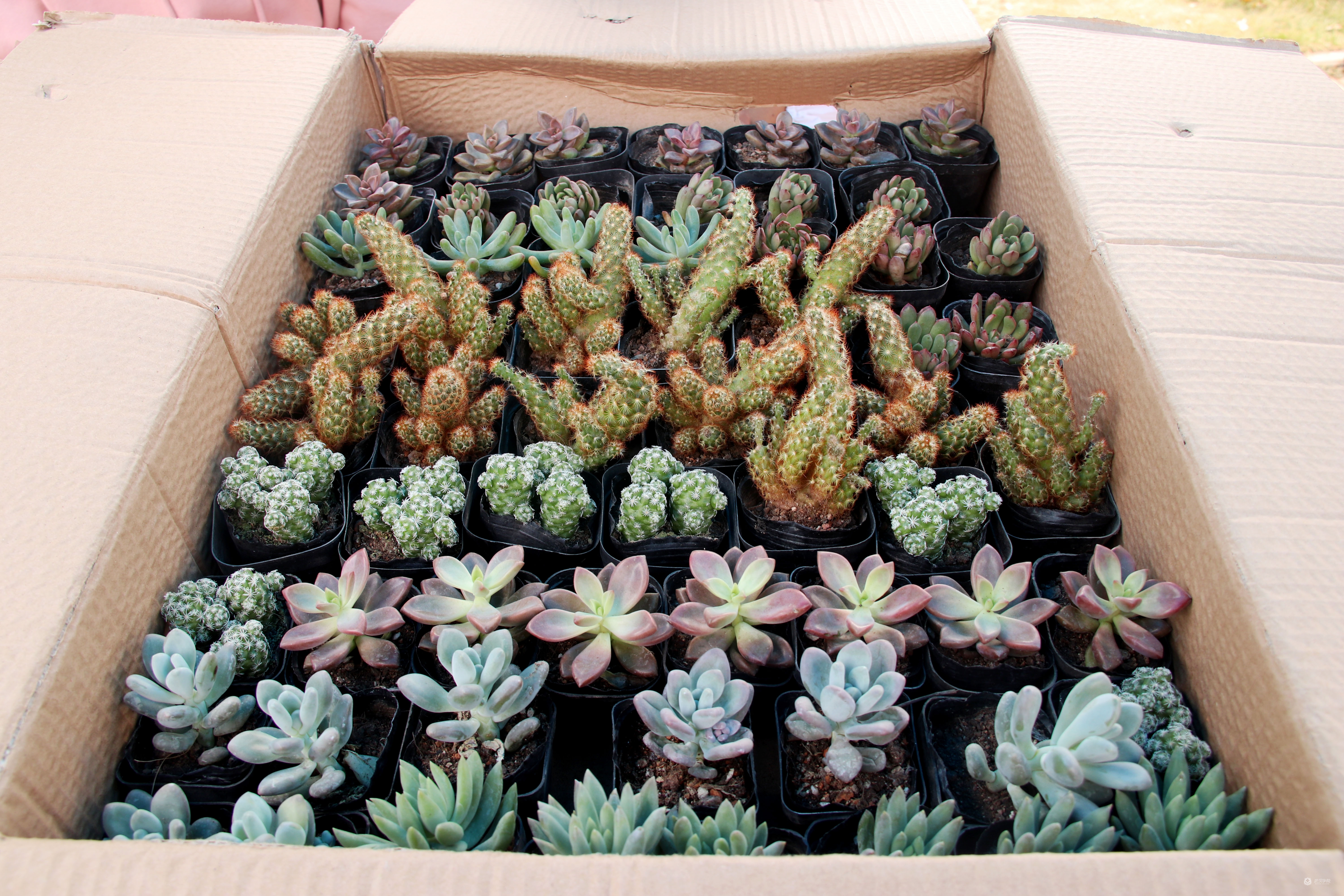 活动中的盆栽分为小盆栽、大盆栽和特大盆栽三种,兑换每一种盆栽所需要的塑料瓶的大小,数量也不一样。现场的盒子里摆放着整齐的多肉,摊点前吸引了不少因好奇前来打听的同学。