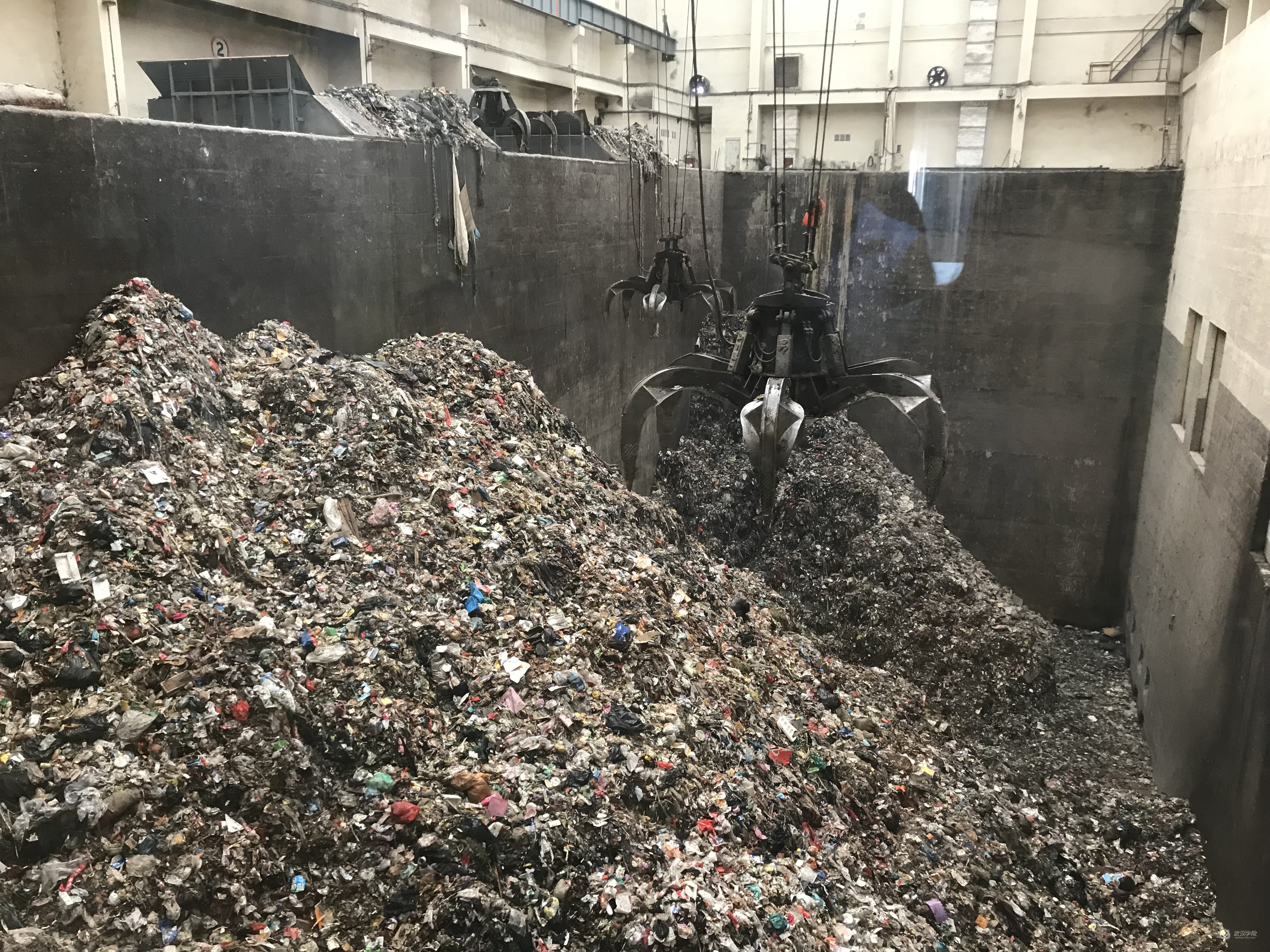 记者来到生产厂房的四楼,透过玻璃,可以看见小山一般的垃圾堆积在库内。该公司运行经理任志强向记者介绍,“垃圾车运来的垃圾倒到垃圾库,会经过3-5天的发酵,再通过垃圾吊车投放到焚烧炉,产生水蒸气,推动汽轮机发电,产生的电力会运输到电网。”对于垃圾烧完后产生的灰渣、烟气以及污水,任志强表示灰渣会运到外面做成环保地砖,烟气则会经过脱硫脱硝后再排放到外面,污水会经过六道过滤工序后处理成无污染的水再排出。