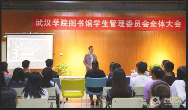 酷夏已近尾声,武汉学院2018届新生入学的各项活动也已尘埃落定。踏着凉爽的秋风、穿过稀疏的细雨,9月27日晚18:00,武汉学院“图书馆学生管理委员会”(以下简称“图管会”)2018届第一次全体大会在陈一丹伉俪图书馆二楼IC创客空间顺利召开。图书馆副馆长刘先熙、信息参考咨询部周莹、文雯、熊梦婷老师出席大会,“图管会”全体成员共80余人参加了会议。