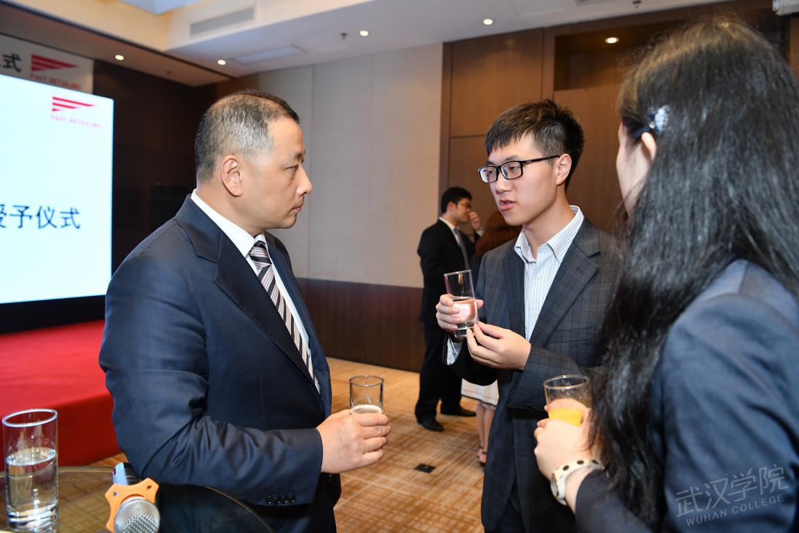 UNIQLO[优衣库]奖学金项目成立于2012年,由中国教育国际交流协会和优衣库共同创办,除了为优秀学生提供5000元的学费援助,还为他们提供企业交流、课题研究、学习体验等成长和发展的机会。武汉学院是优衣库奖学金项目中唯一一所民办高校,2018是武汉学院参与优衣库奖学金项目的第二年。在授予仪式当天,迅销集团大中华区CEO潘宁先生表达了个人对武汉学院创办人陈一丹先生的尊敬之情,同时也肯定了武汉学院的办学理念。在授予仪式最后,潘宁先生为获奖同学送上了祝贺,并以自身经历和体会强调了国际交流的重要性,鼓励同学们志存高远,锐意进取。