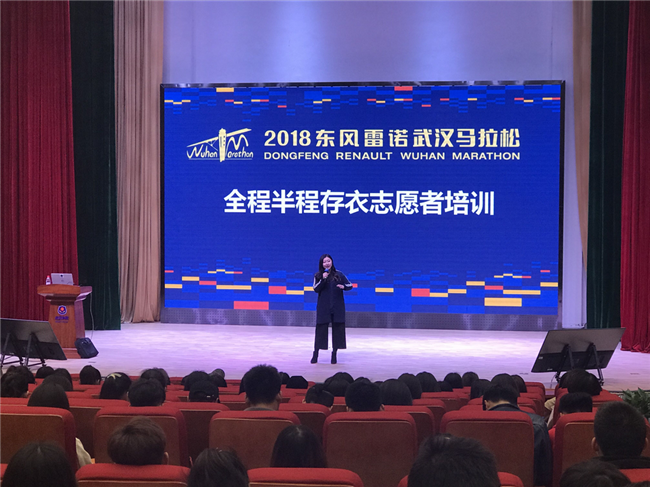 2018年东风雷诺武汉马拉松进入倒计时。3月26日下午6时,由武汉马拉松组委会主办,武汉学院协办的武汉马拉松志愿者培训大会在马化腾教学楼2102举办。据悉,2018汉马有136311人报名志愿者服务,最终2400人入选,总共涉及将近七十多种岗位。武汉学院作为2018武汉马拉松合作高校,约800人报名此次汉马志愿者,最终282人入选。