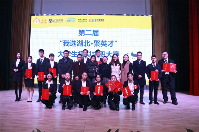 21日,第二届““我选湖北·聚英才”大学生模拟求职大赛黄家湖赛区决赛在我校马化腾教学楼2102报告厅举行。此次大赛覆盖湖北省内所有高校,并设立五大分赛区,我校陈丽君、张文梅、陈雅清等5名优胜选手入选决赛,分别获得了一等奖、三等奖及优秀奖。