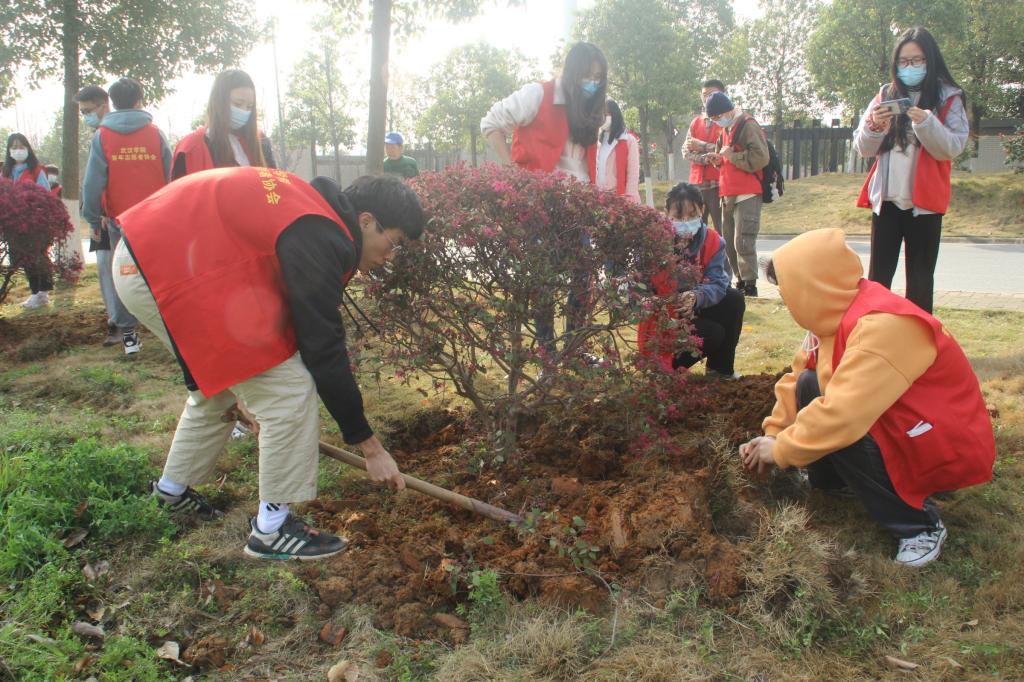 同学们认真细致地挖土,栽种树苗,忙碌的身影与刚刚种下的树苗为校园增添了一份生机。最终,230棵树苗全部栽种完成。虽然泥土沾满衣鞋,汗水挂满脸庞,但眼前这一片生机盎然的绿意让大家满心欢喜。会计学1904何丽敏同学表示:“参加植树活动,感受种植的全过程,这种体验非常新奇。以后每每经过自己亲手栽下的树,都会感到很亲切。哪怕今后毕业也会想常回来看看。”