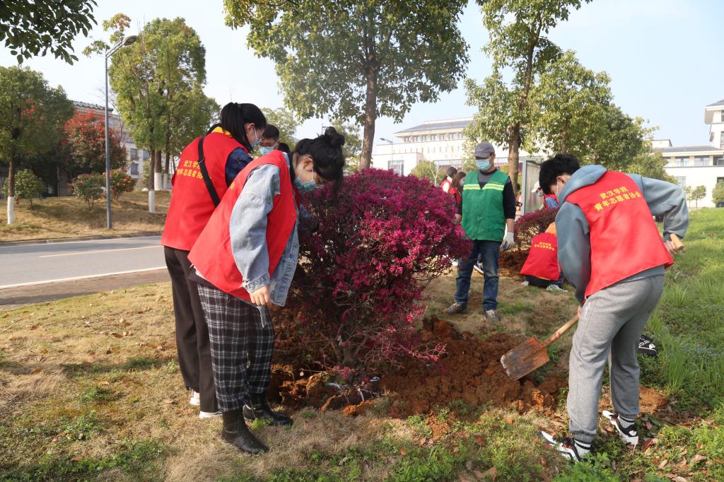 在植树节到来之际,我校青年志愿者们分别于3月9日和12日在学校北门和东门开展了植树活动,为美好的校园环境增添一抹新绿,此次活动共有百余名学生参加。