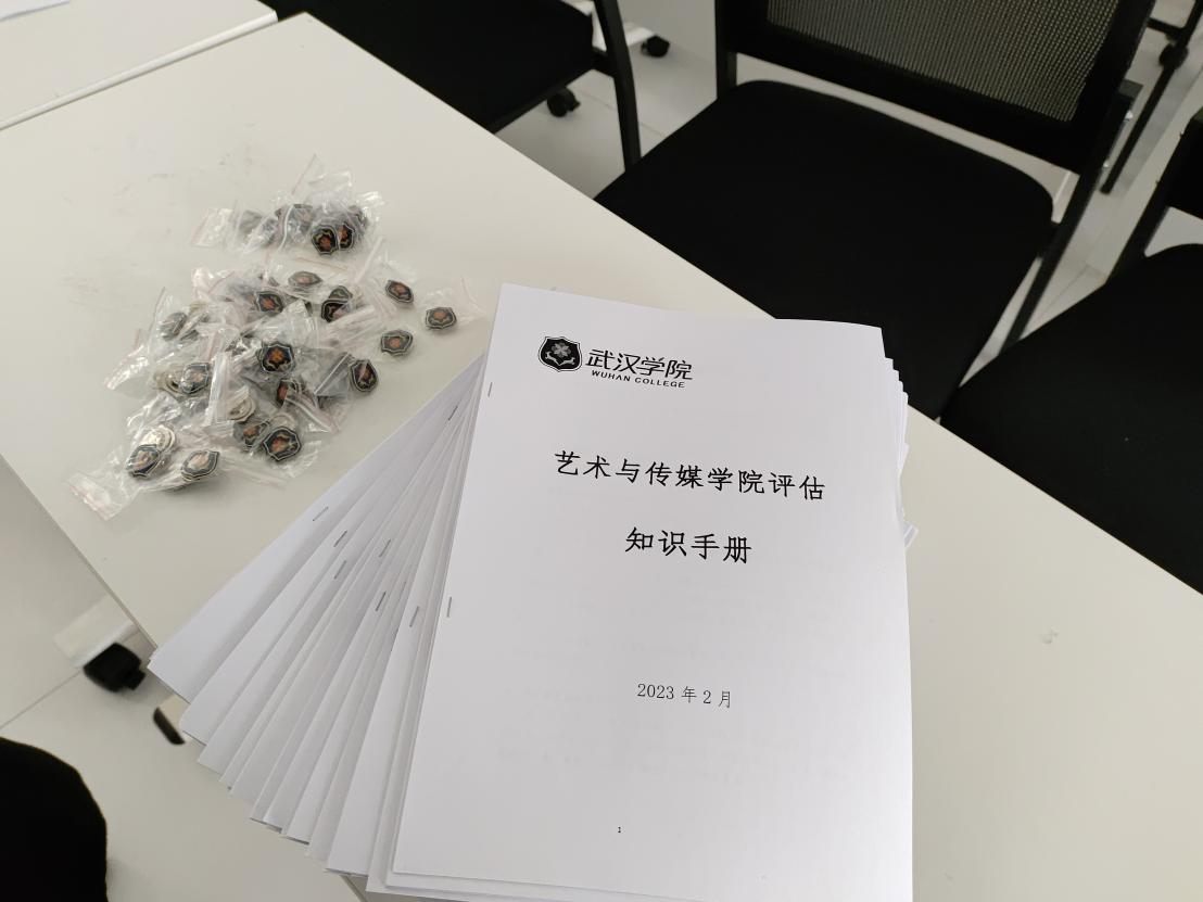 会前,李雪为教师分发了《艺术与传媒学院评估知识手册》和学校徽章,并强调老师们要爱岗爱校,规范佩戴武汉学院校徽。