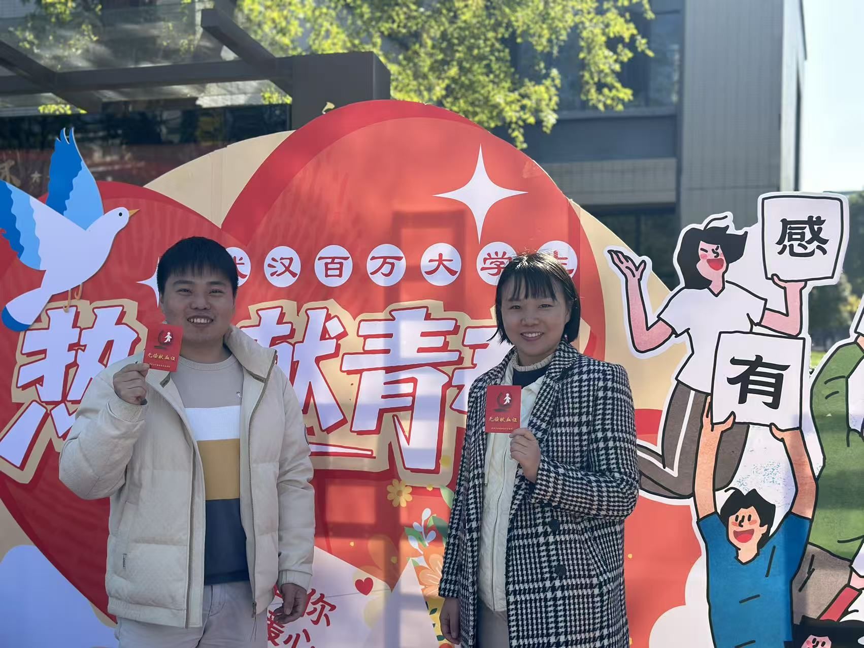 武汉学院献血志愿者们参与活动现场。