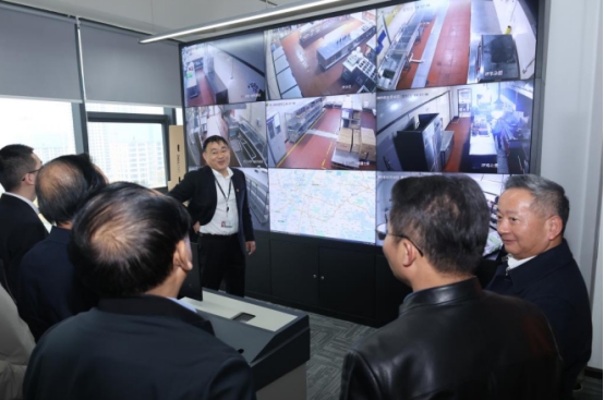 在总部,一块实时直播大屏引发考察组关注。屏幕上清晰呈现了该公司服务的213家合作单位后厨实况,我校食堂后厨亦在其中。后厨环境窗明几净,工作人员规范作业的场景一目了然。