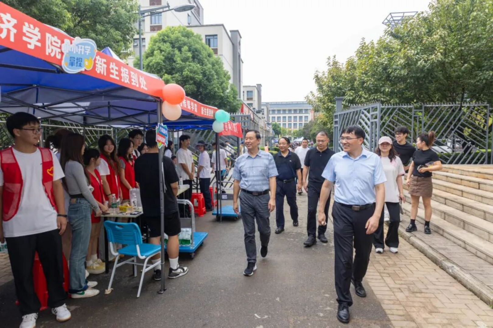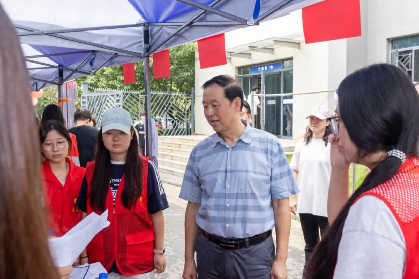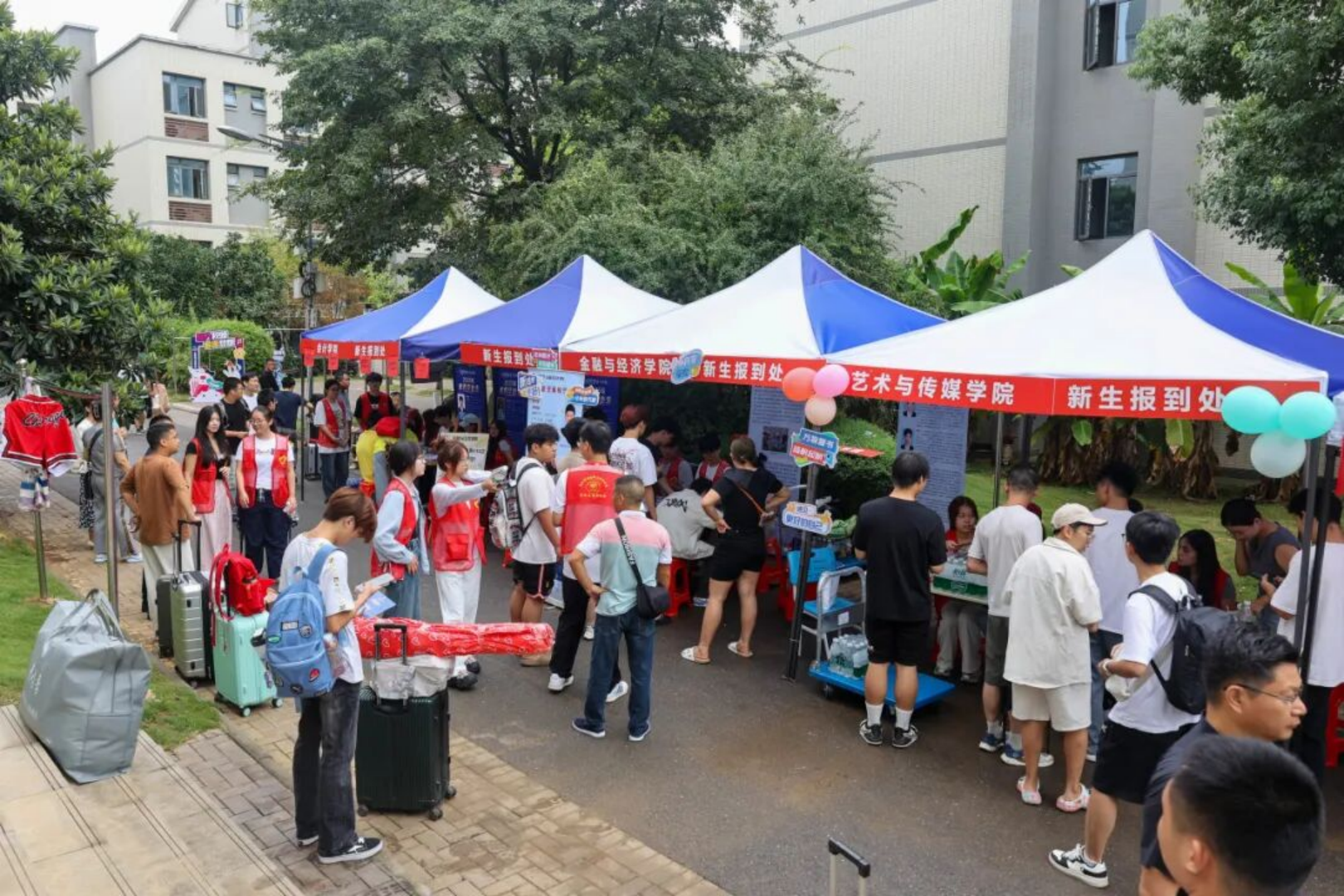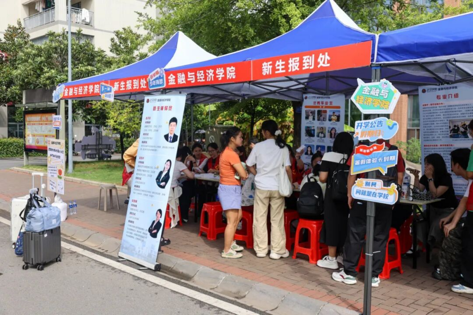 各学院寝室楼门口均设有迎新摊位,成为迎接新生的“暖心驿站”。清晨6点,各学院的老师、辅导员、朋辈导师便已在此守候,有条不紊地为新生办理信息登记、提供引路指引,用耐心与热情开启新生的校园初体验。