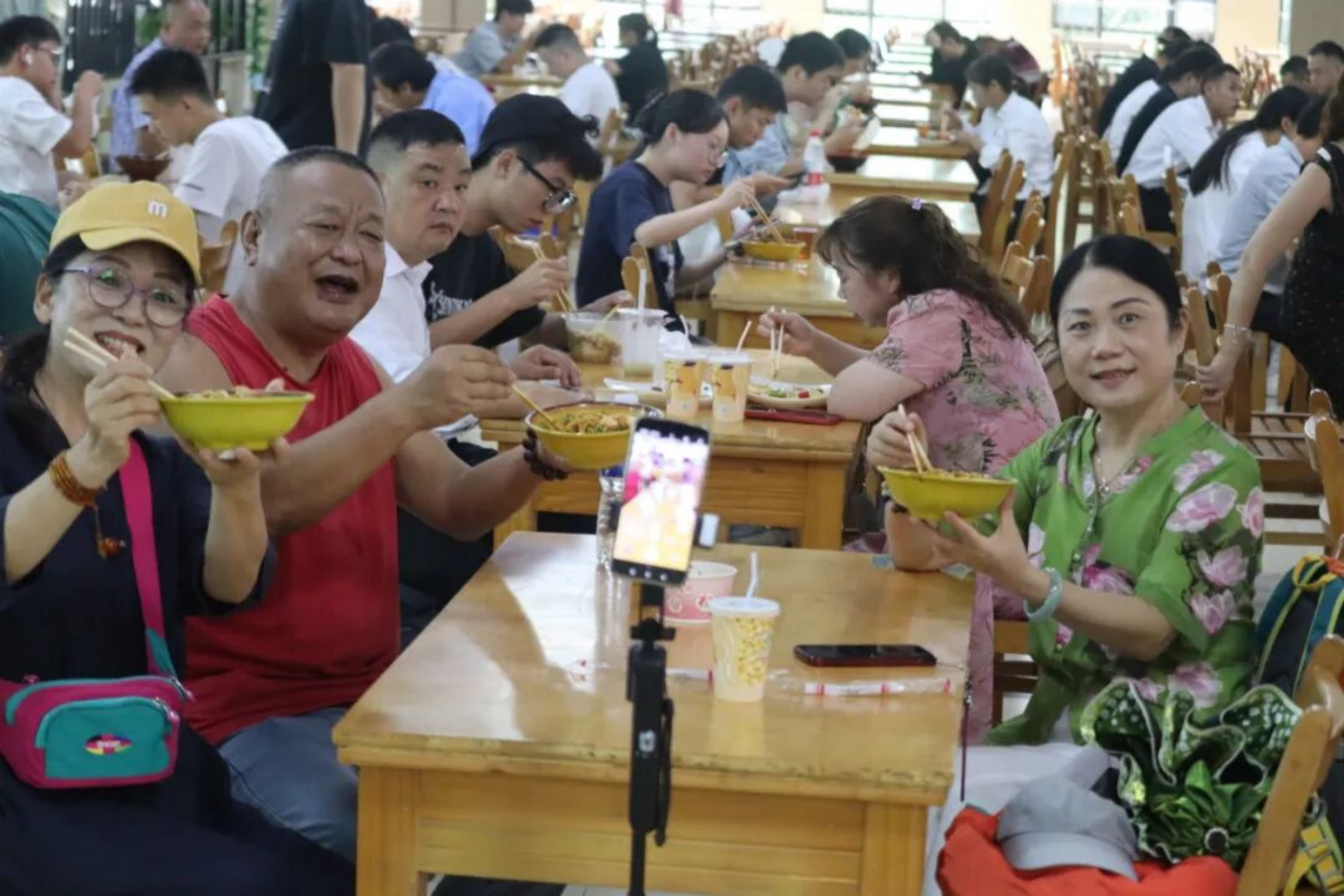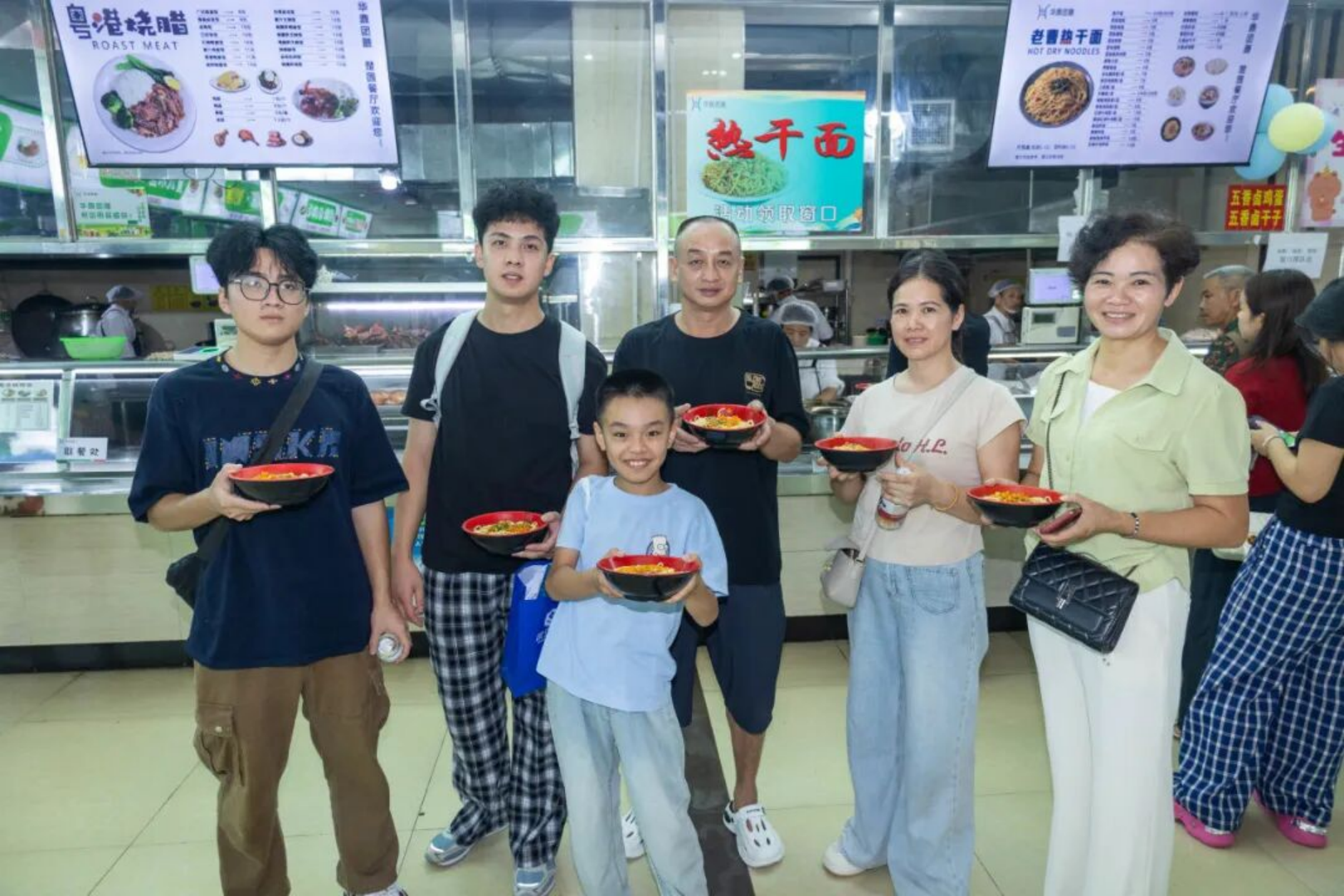 楚园食堂,热干面香气四溢,新生和家长们三五成群前来品尝。来自山西的李同学表示自己还是第一次吃正宗的武汉热干面,他说:“热干面很特别,学校的安排很暖心。”