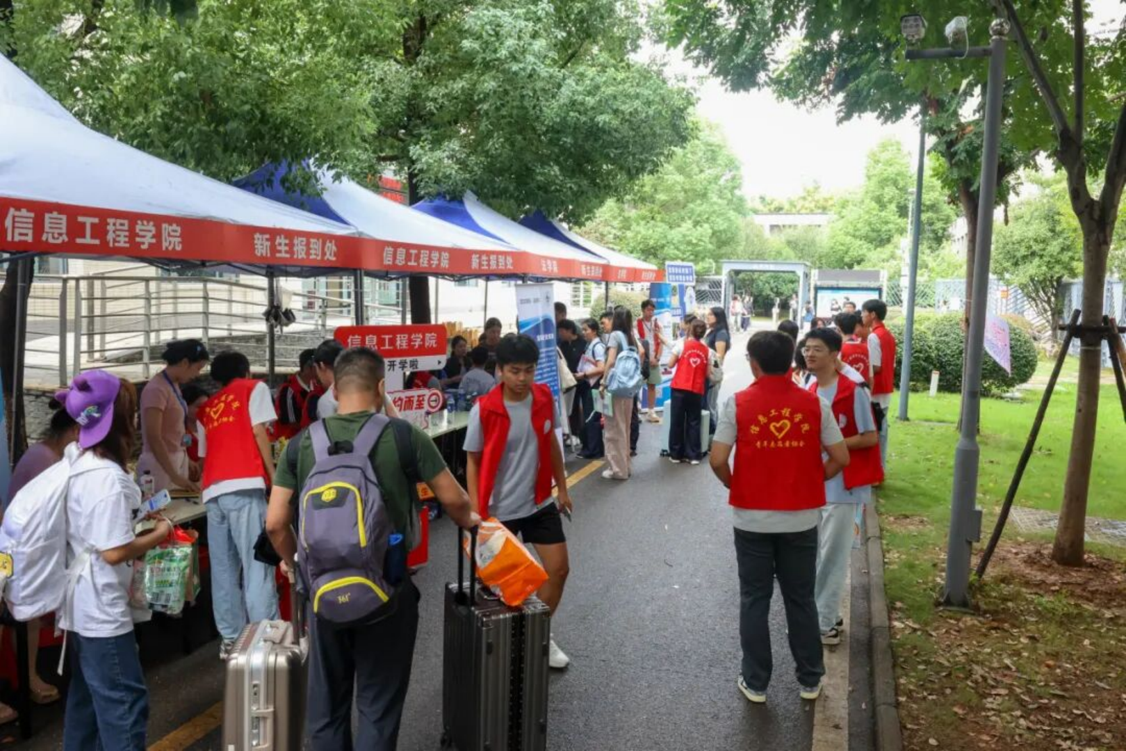 今年,共有569名学生志愿者投入迎新服务,他们承担着接站、引路指路、答疑解惑及搬运行李等任务。其中75名校接站志愿者,更是清晨6:30便整装出发,前往三大火车站,以饱满的热情迎接每一位新同学的到来。