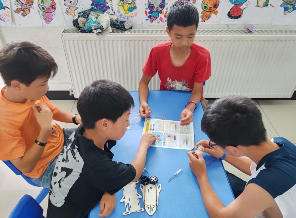理论讲解结束后,30余名学生分成8个小组,在老师的指导下开始动手组装。有的专注拼接车身框架,有的反复调试太阳能板角度以获取最佳光照,还有的围着齿轮传动装置讨论如何提速。“分工时吵了几句,但很快就商量好了谁负责装饰、谁管调试。”五年级学生们笑着说,团队协作让原本复杂的组装变得顺利多了。