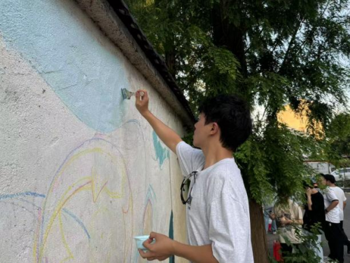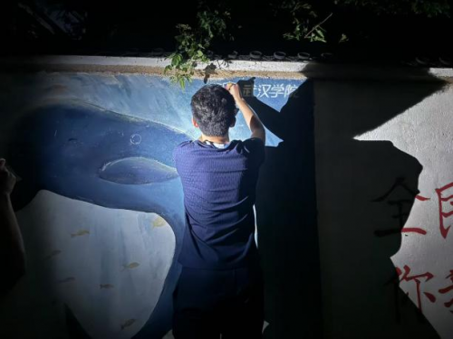 活动执行期间,当地日间气温持续攀升至 35℃以上,高温导致颜料易干结,给户外创作带来不小挑战。志愿者们无惧酷暑,坚持露天作业;夜幕降临后,又借着灯光细致打磨细节,同时克服蚊虫侵扰的困扰。暖心的是,社区环卫工主动送来水桶等工具提供支持,形成公益行动与居民互动的温情场景,让善意在协作中不断传递。