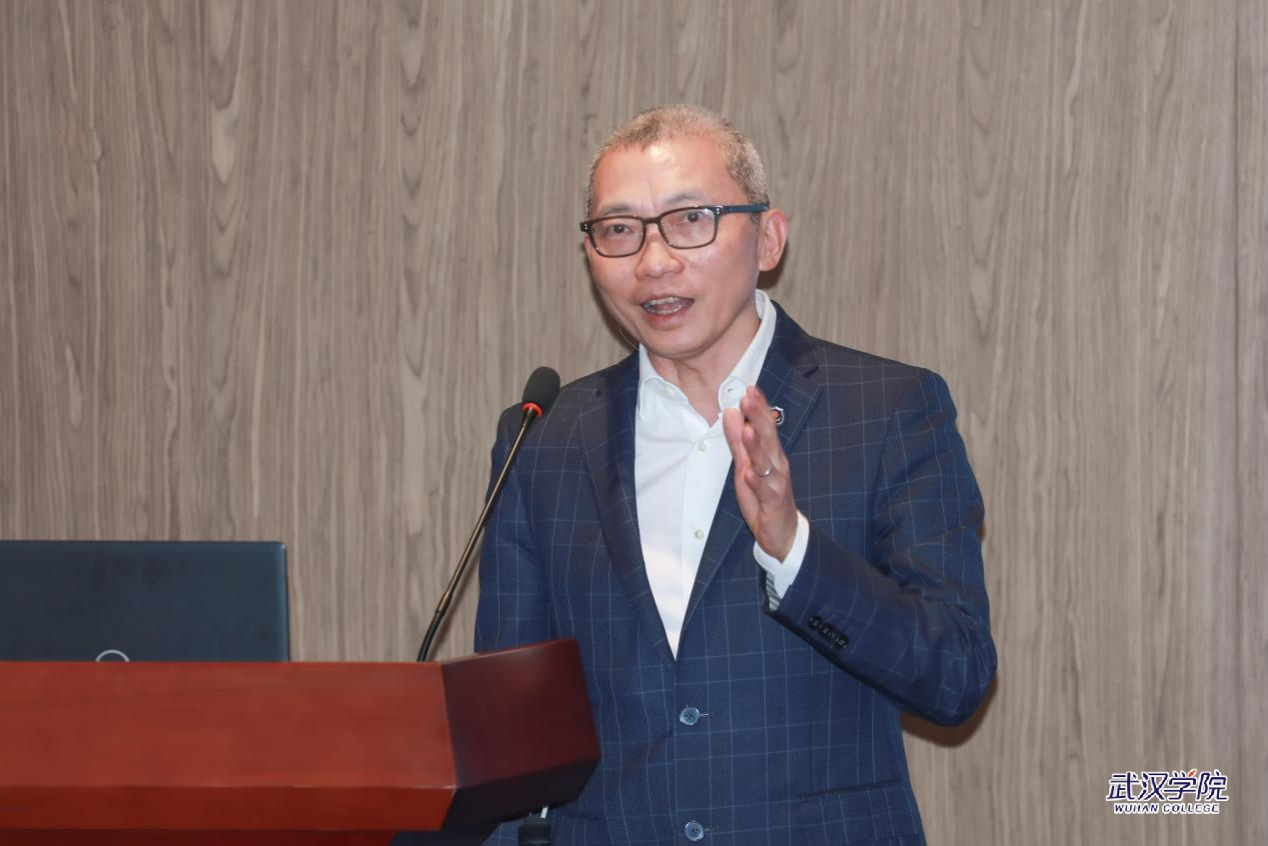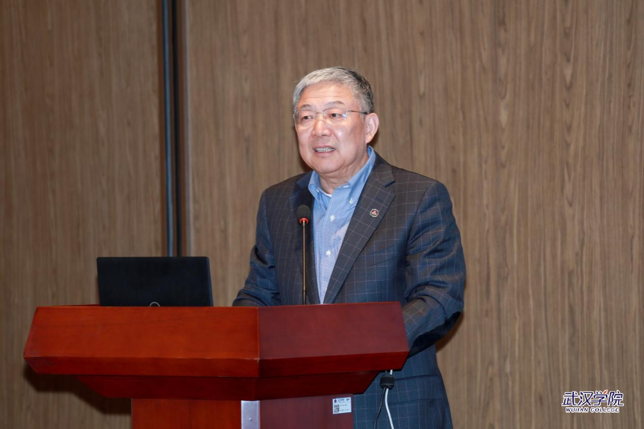 武汉学院创办人、校董会主席陈一丹先生作总结讲话。他首先对本次战略研讨会的成果给予高度肯定,指出本次会议既有战略高度,又紧密贴合学校办学实际,意义远超会议本身,更为学校未来发展指明了方向。他结合近期与香港科技大学团队交流的心得,深入分析了中美在AI领域大模型、硬件终端、数据、算力、能源五个层面的竞争态势。在此基础上,他提出学校发展的核心命题:在这场深刻的产业与社会变革中,武汉学院应当培养什么样的人才,又该如何确立自身的发展定位与前行路径? 围绕这一命题,陈一丹先生分享了深刻思考:一是凝聚共识,夯实发展根基。打造一支视野开放、信念坚定的队伍,为学校应对 AI 时代挑战、抢抓战略机遇提供坚实保障。二是推动落地,构建发展闭环。将战略构想与数字化变革深度融合,转化为可执行、可评估的闭环体系。他以校企合作为例,强调要强化顶层设计,打通教学、研发、实习与产业应用全链条,构建可持续的共赢生态。最后,他以 “大江大湾” 为愿景,提出联动武汉产业生态与粤港澳大湾区创新资源,深化产教融合,把发展蓝图转化为扎实成果。