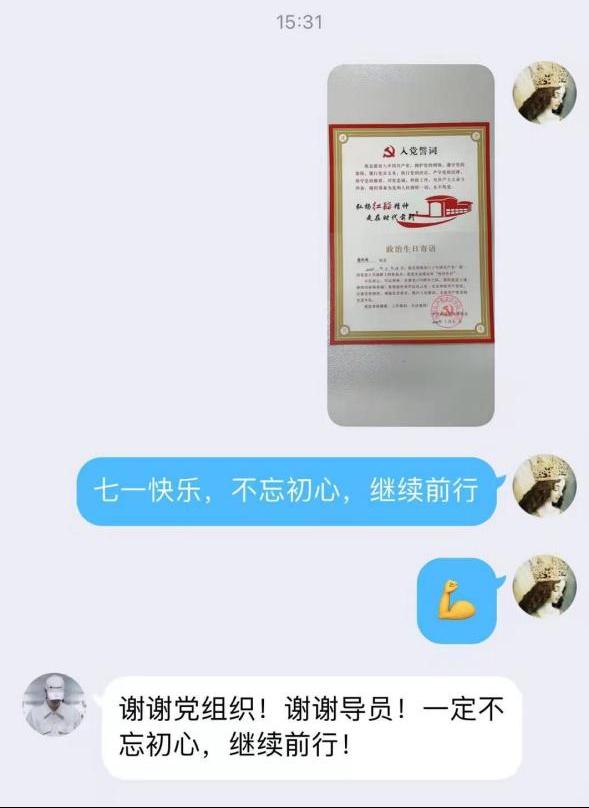 “自信人生二百年,会当水击三千里。”中国的未来属于青年,中华民族的未来也属于青年。校党委在七一前向全校党员发放了“政治生日珍藏卡”,部分已离校的党员在七一当天也收到了辅导员拍照的专属“政治生日珍藏卡”和寄语,希望全体毕业生党员牢记嘱托,继续奋斗,开启新征程,让青春在祖国和人民需要的地方绽放绚丽之花。