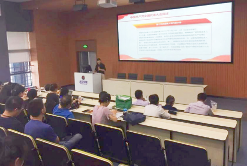外国语学院党总支副书记曹辉以“中国共产党走过的光辉历程”为主题,带领全院教职工学习了中国共产党全国代表大会第一次会议到第十九次会议的内容。