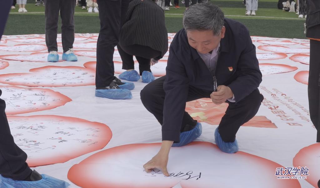 校党委委员、校长李忠云在红心上签名