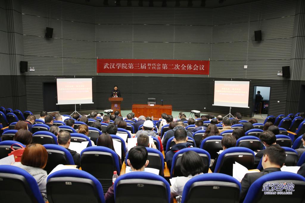 3月24日下午,武汉学院隆重召开第三届教职工代表大会暨工会会员代表大会第二次会议(简称三届二次“教代会”)。全体校领导出席,大会应到正式代表62人,实到59人,会议还邀请了有关职能部门及院(部)主要负责人列席会议。代表们齐聚一堂,集思广益,建言献策。