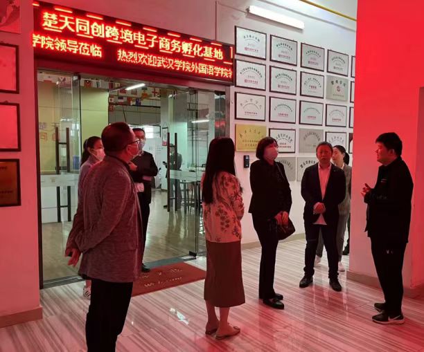 5月19日下午,外国语学院党总支书记、院长曹曼,党总支副书记曹辉,副院长夏胜武带领商务英语系主任、教研室主任以及毕业生班辅导员一行走访了武汉世传教育科技有限公司。武汉世传教育科技有限公司总经理叶斌、副总经理夏鑫、楚天同创跨境电商孵化基地孵化中心副总经理张诗若热情接待了学院一行。