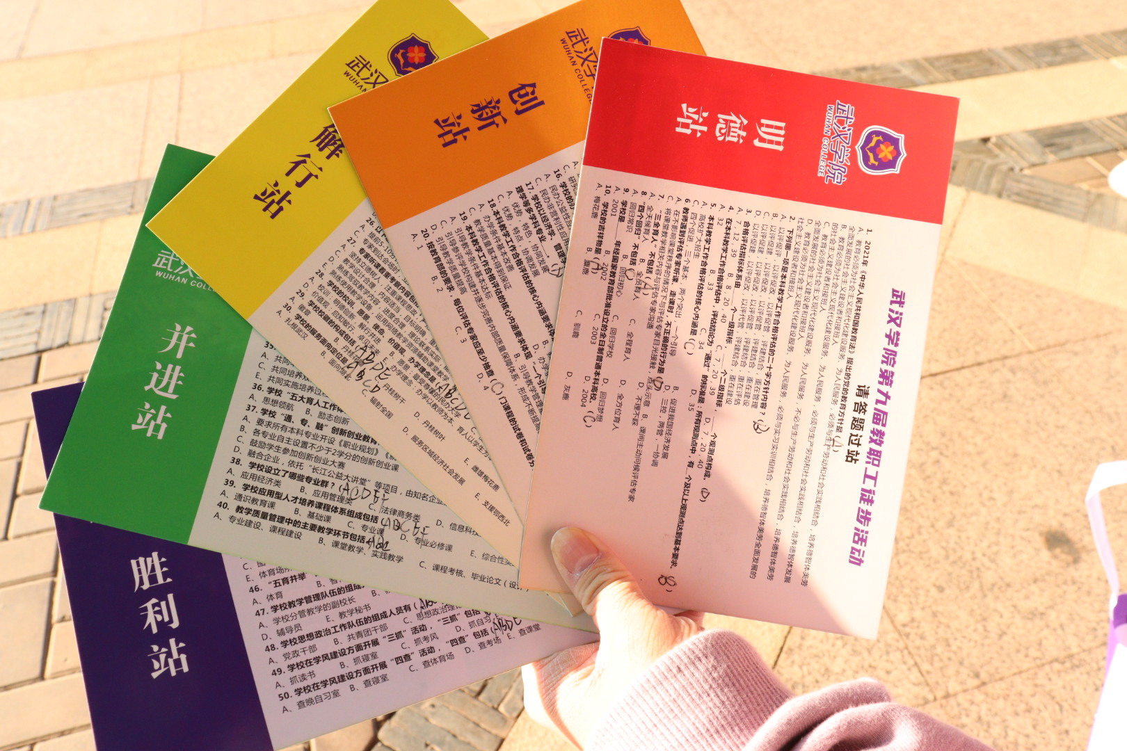 本次徒步活动全程5.1公里,沿线设五个卡点,卡点以学校校训的八个字和“胜利”两字命名,分别为“明德站”“创新站”“解行站”“并进站”和“胜利站”,为党的二十大胜利召开营造和谐稳定的校园氛围,同时寓意着学校本科教学工作合格评估最终胜利通过。途经卡点时需领取评估知识五色答题卡,到达终点前集齐色卡,答完50题表明走完全程。