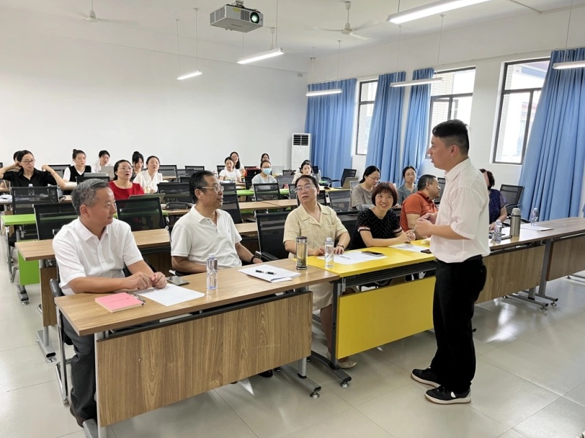 8月24日上午,校党委书记陈祖亮前往外国语学院参加磨课验收评审活动,英语系和商务英语系全体教师参加此次活动。湖北经济学院孙小军副教授、郑昭梅副教授、湖北第二师范学院王晓刚副教授、校级督导马云霞教授和吴海平教授受邀担任此次活动的评审专家。