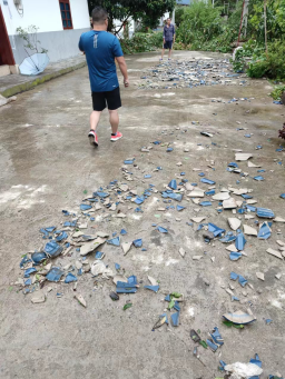 由于暴雨导致多处树木被风吹倒,道路被阻塞,驻村工作队立即行动起来,与村两委班子一道奋战一线,组织人力打开交通要道。雨势稍缓后,驻村工作队迅速入户了解村民受灾情况,安抚受灾群众情绪,开展灾情排查,此灾暴雨导致全村170户房屋遭受到不同程度的损坏,10余户屋内进水,几乎每户村民家里都遭受到了不同程度的财产损失。