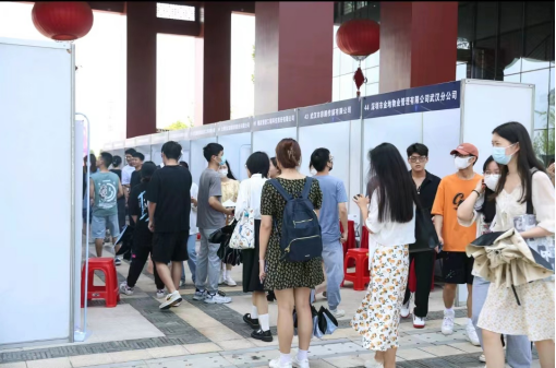 “联企拓岗,助力学子就在武汉”校园招聘会是我校和武汉市人才服务中心(中国武汉人才市场)、武汉人力资源服务协会联合主办。“就在武汉,留夏就业”校园招聘会是我校和江夏区人才服务中心、武汉翰德智信公司联合主办。来自光电子信息、网络科技、智能制造、生物医药等领域的100家企业带来了众多优质岗位诚聘英才。这些即将步入社会的年轻学子们带着个人简历结伴而来,参看企业介绍展板,咨询企业负责人,寻觅自己中意的岗位,现场签到学生近千名。其中,楚能新能源、骏腾拓达、金光医疗等企业吸引了众多学生,学生们饶有兴趣地咨询岗位详情,并递上简历、添加企业负责人的联系方式。