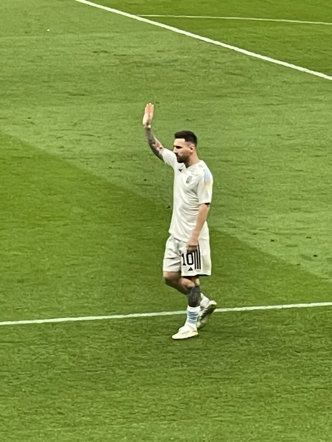 球迷震耳的呼喊声中,两支伟大的球队奋力相拼,整场比赛扣人心弦,荡气回肠,注定成为世界杯的经典之战。本届世界杯中,梅西第五次代表阿根廷出征,与法国队的决赛一波三折,数度领先又被扳回,最终在点球大战中赢得胜利,如愿夺冠捧得大力神杯。我印象最深的是,阿根廷队世界杯首战失利,梅西接受采访时表示,“没有任何借口,我们将比以往更加团结。任何事的发生都是有原因的,我们必须为即将到来的事做好准备,我们必须要赢,这取决于我们自己。”
