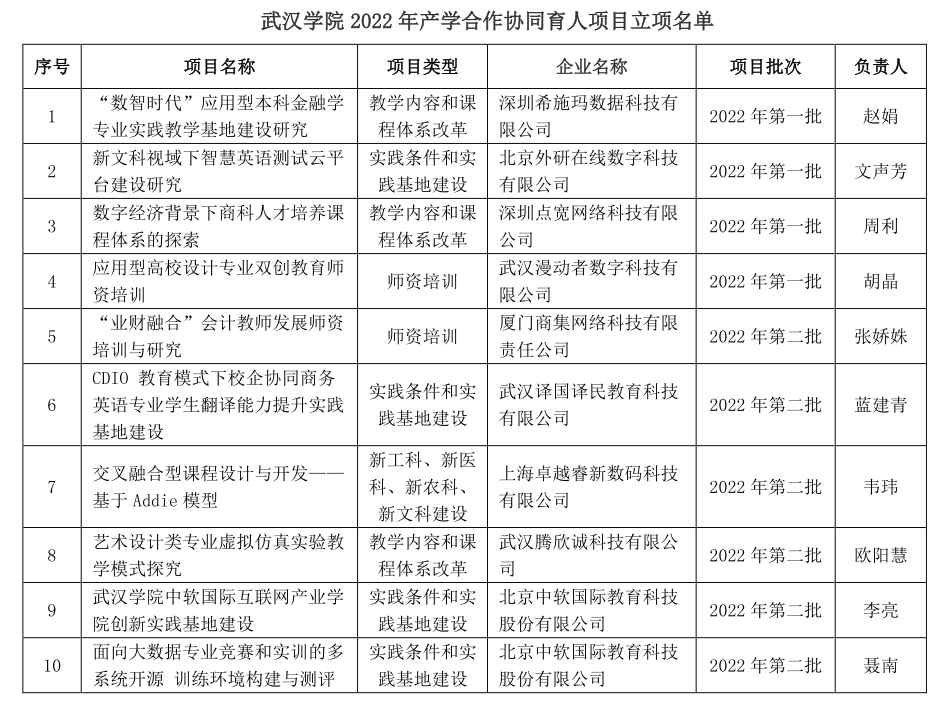 2月6日,教育部高等教育司公布了2022年第二批产学合作协同育人项目立项结果,我校6个项目获批立项。至此,我校2022年教育部产学合作协同育人项目立项数达10个。