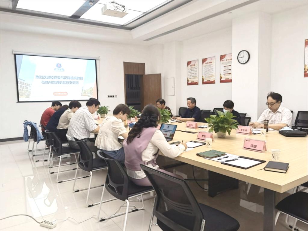 马院通识党总支书记、院长何捷一教授、信息工程学院党总支书记、院长郑建生教授、副书记副院长吴文等与会人员,从组织体系建设、党组织政治核心作用发挥情况、党支部建设、党员管理工作、特色党建工作,以及党建工作存在的困难和问题进行了汇报交流。