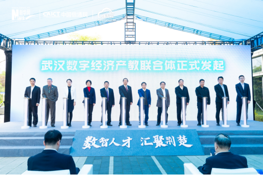 校长李忠云(左六)为武汉数字经济产教联合体揭幕