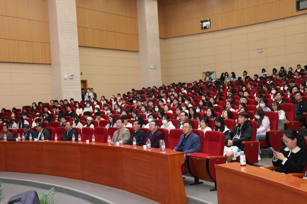 我校校领导、相关职能部门负责人和师生代表共同聆听讲座,刘炽平报告厅内座无虚席。