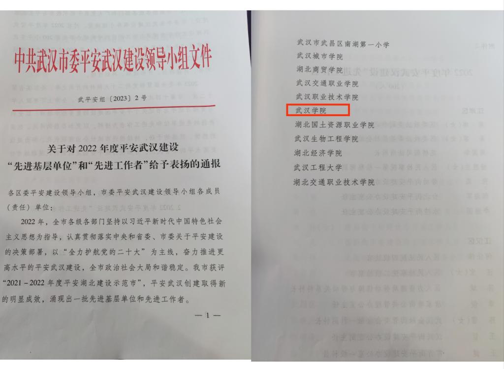 昨天,中共武汉市委平安武汉建设领导小组通报2022年度全市平安建设考评情况,我校获评2022年度平安武汉建设“先进基层单位”。