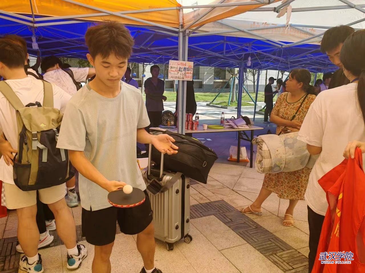 “报到先颠球,酷暑不上头!跳远四米五,搬运不辛苦!”体育系脑洞大开,为新生准备了许多迎新小游戏,新同学们可以挑战颠乒乓球、投掷网球、跳远、扔飞盘等体育相关小游戏,能够赢得精美礼品的同时,还能获得学长学姐帮忙搬运行李。除此以外,体育系还为每名新生准备了印有名字的专属定制可乐。