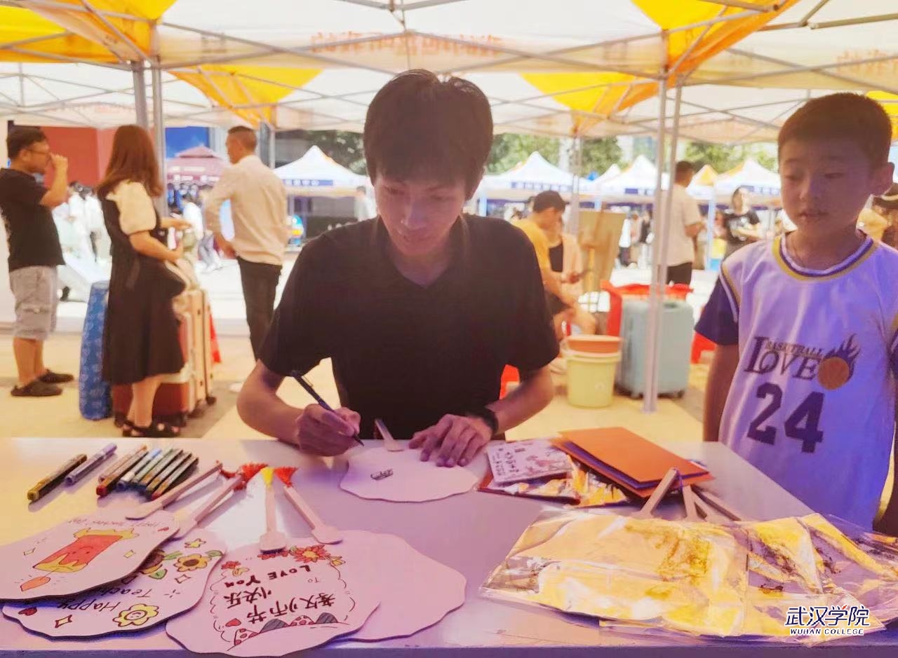 临近教师节,外国语学院在迎新现场开展教师节DIY活动,同学们可以DIY制作团扇、编制袋、贺卡等物品,为老师们送去祝福。