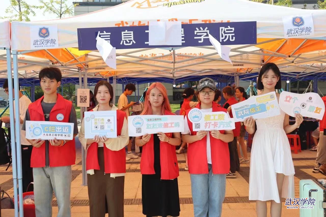 信息与程学院制作了学院打卡牌,新同学可以扫描打卡牌上的二维码,了解自己学院的抖音号和QQ群,同学们在信工学院官方抖音号上开展了直播逛校园活动,用镜头与观众互动,展现学院风采。