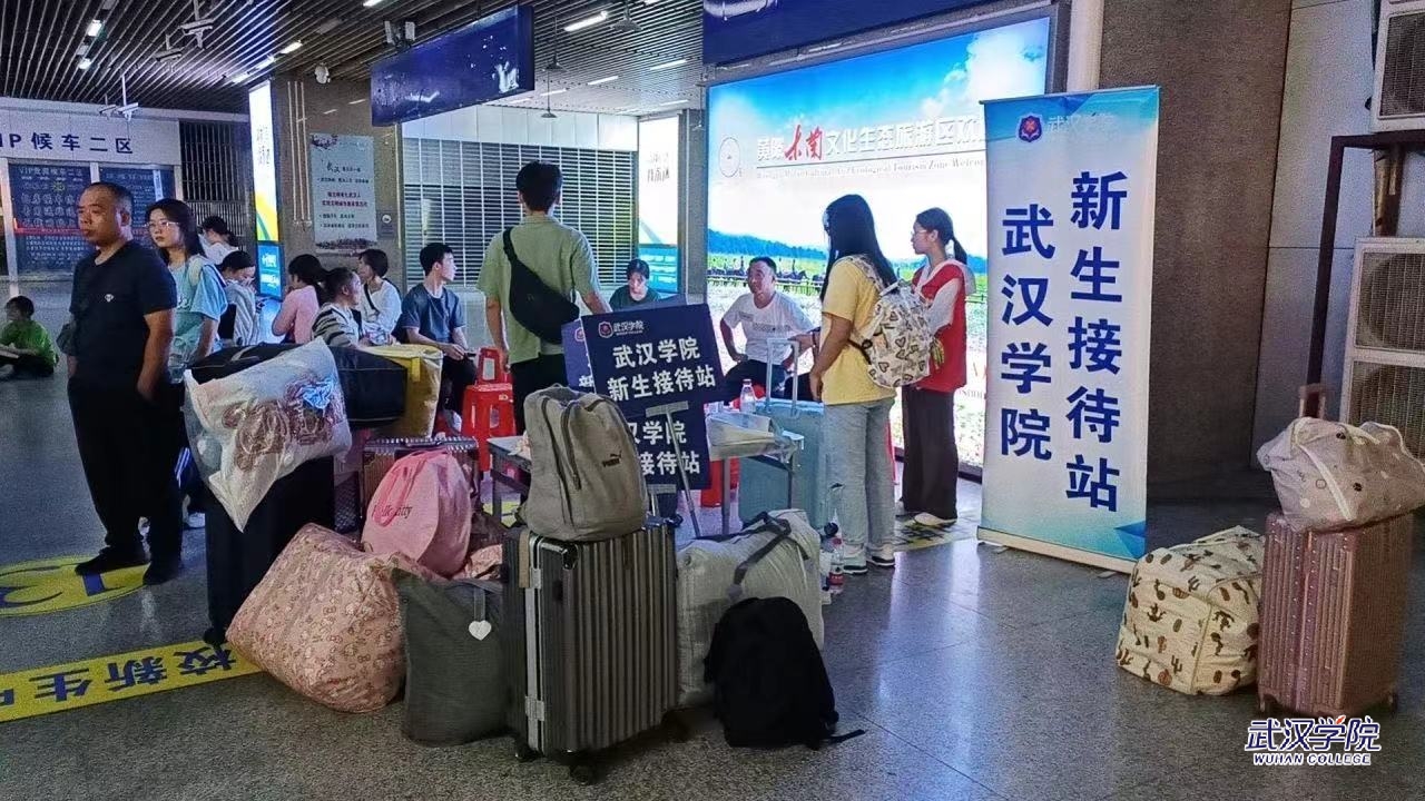 学校分别在武汉站、武昌火车站、汉口火车站以及傅家坡长途汽车站安排接站志愿者,设立“武汉学院新生接待站”。早上七点钟,武昌火车站人影攒动,在校青协志愿者的带领下,新生与家长坐上“武汉学院迎新专车”踏向前往学校的旅程。