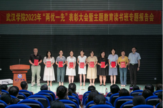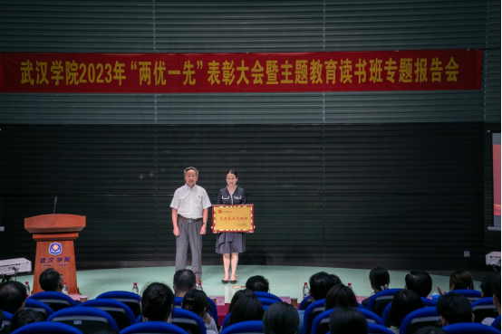 7月5日下午,我校2023年“两优一先”表彰大会暨主题教育读书班专题报告会在马化腾教学楼2104报告厅隆重举行。校领导、两委委员、中层干部、院(部)读书班成员、党支部书记、受表彰集体和个人、思政课教师、辅导员以及师生党员代表参加会议。