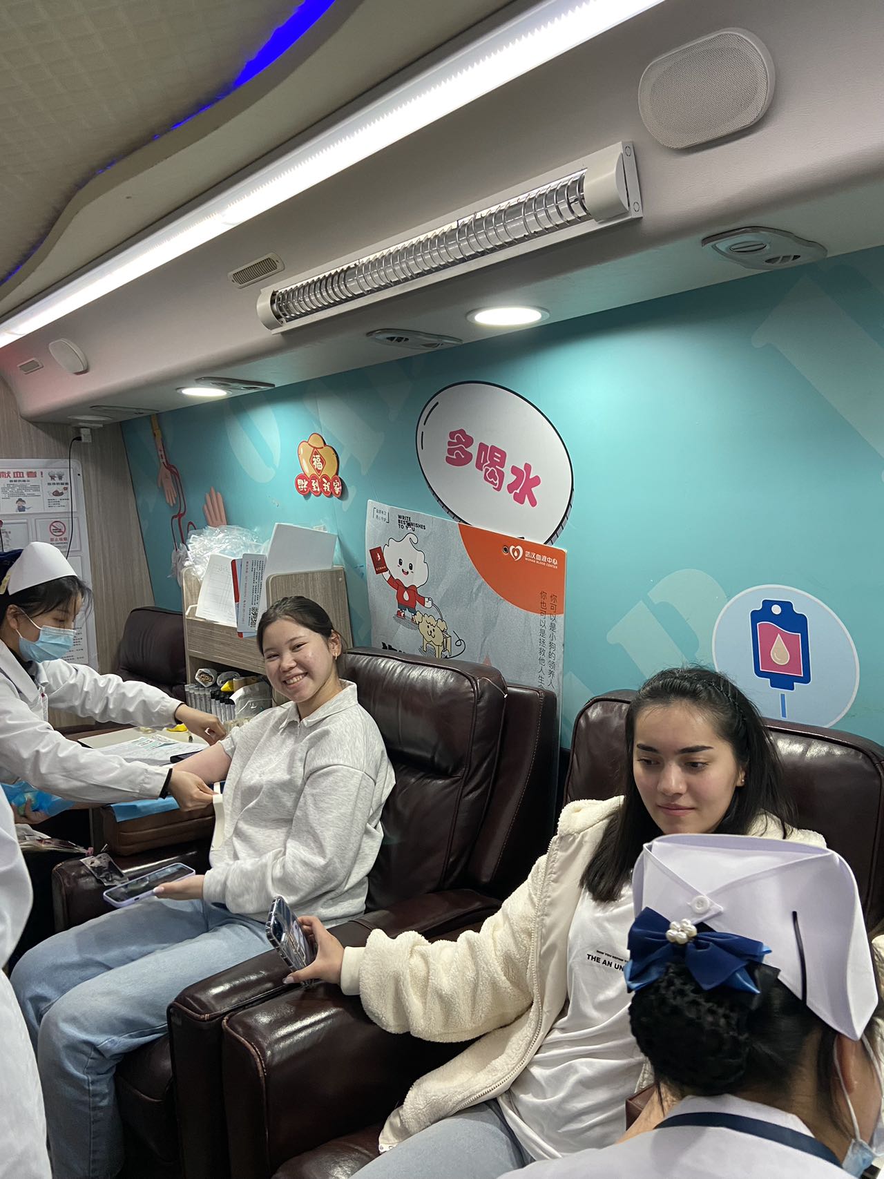 12月6日至7日,武汉血液中心采血车在我校进行定点采血,在校留学生得知消息后踊跃参与献血。