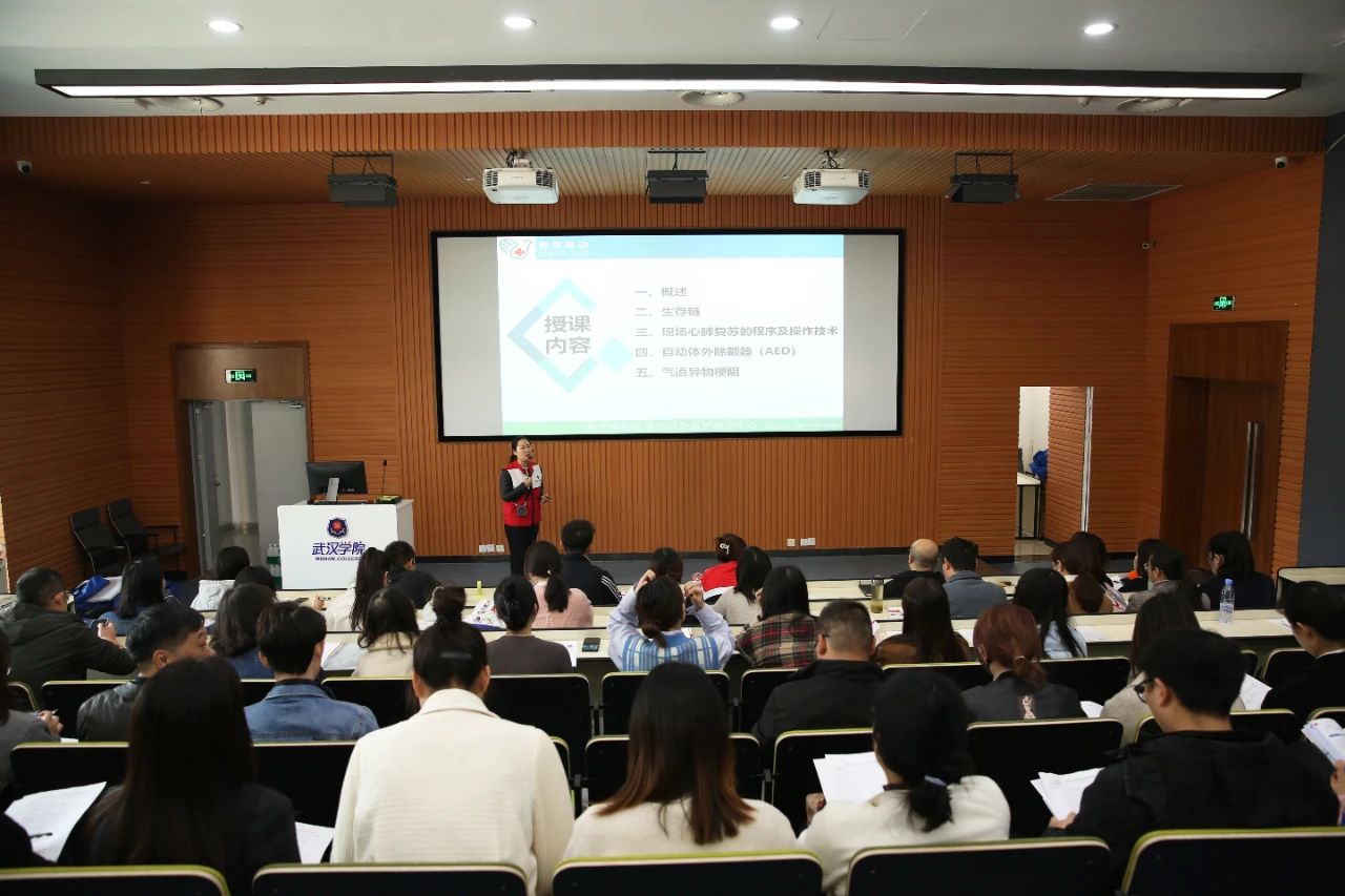 为了使用好这批AED“救命神器”,中国教育发展基金会联合武汉市红十字会应急培训中心,于11月22日—29日在武汉学院开展了应急救护暨AED使用专题培训。全体辅导员、体育老师、安保人员、教室管理员、宿舍管理员、校医务室医生、国防协会和义务消防队等关键岗位人员共300人分六场参加培训。