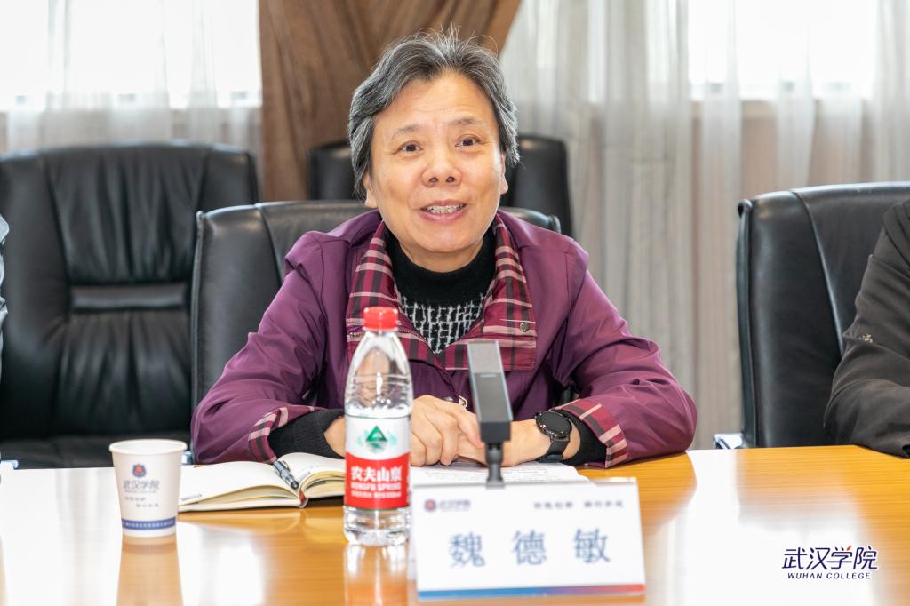 魏德敏表示,来到武汉学院有一种莫名的亲切感,因为武汉学院的校园由华南理工大学何镜堂院士担任总设计,而广州城市理工学院的前身是华南理工大学广州学院,两所院校无形中就有了联结。她谈到,此次前来调研,一方面是为本科教学工作合格评估学习取经,另一方面也是为了加强两校间的交流互动,促进合作与联系,共同推动高素质应用型人才的培养。