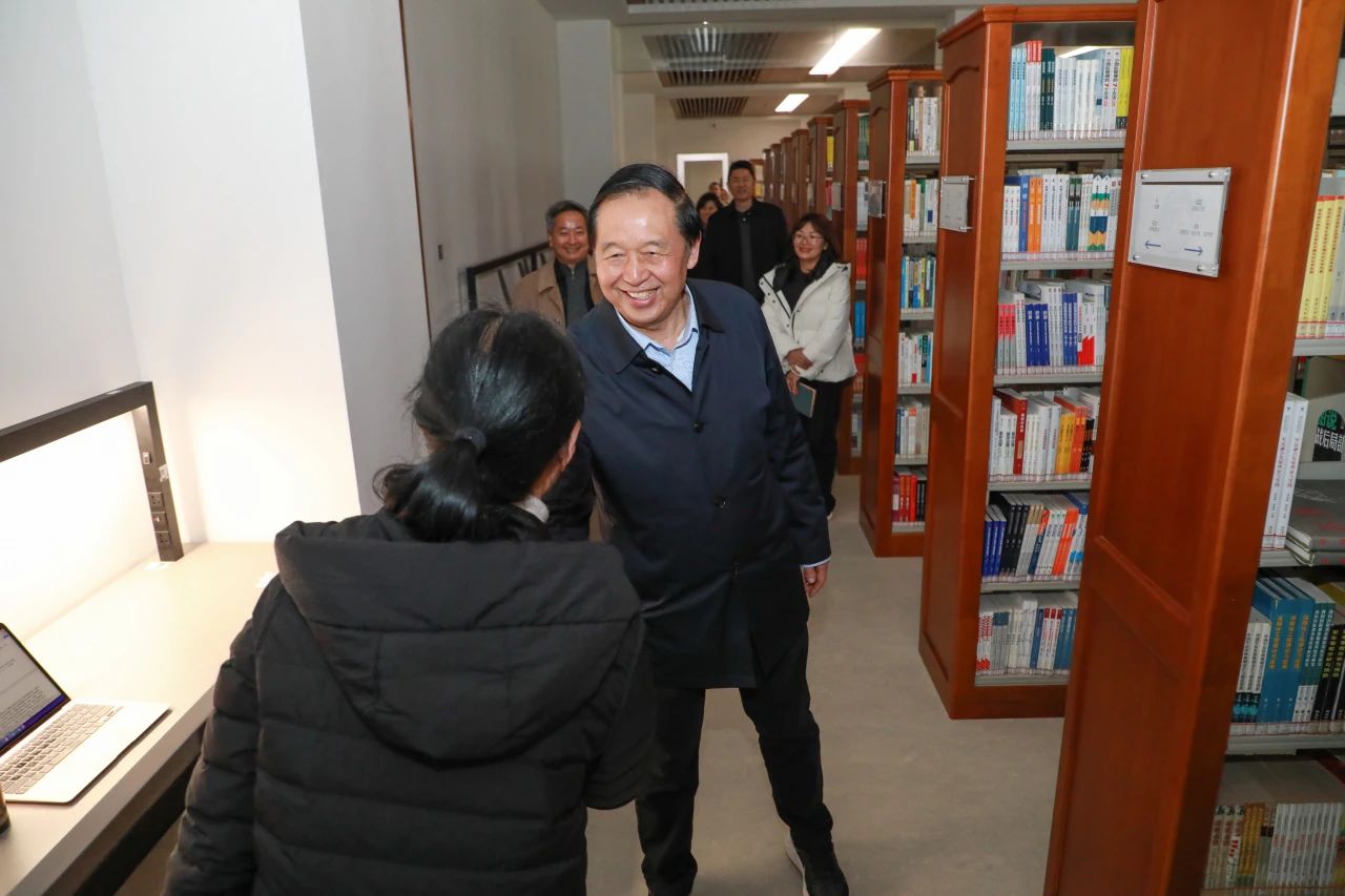 校长李忠云与查阅资料的老师握手