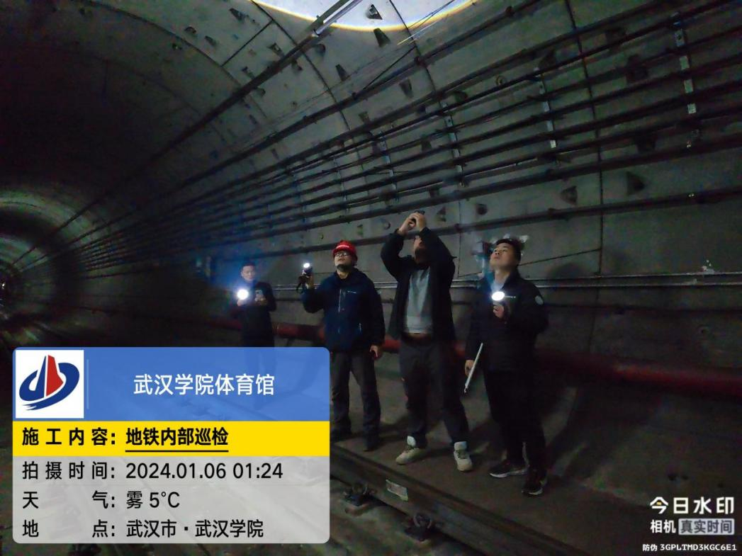 1月6日凌晨1点,在地铁全面停止运营完成检修后,我校后勤保障处联合地铁运营单位深入地铁隧道勘察,安装安全监测系统,确保体育馆施工期间安全。