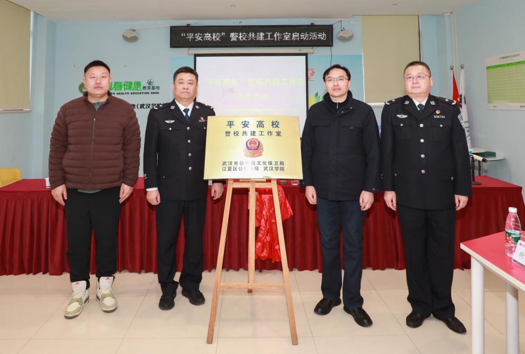 今天上午,全市首个“平安高校”警校共建工作室(以下简称“工作室”)启动仪式在我校马化腾教学楼举行,活动由武汉市公安局文化保卫局、江夏区公安局分局和我校联合举办。武汉市国保支队党委书记、支队长李闽、江夏分局副局长王卫华和我校党委副书记、副校长黄保红出席仪式,国保支队、江夏分局和我校校办、宣传部、后勤保障处等相关部门负责人参加仪式。