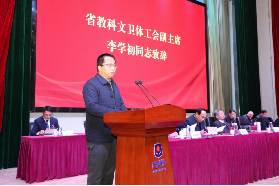 省科教文卫体工会副主席李学初同志致辞。他说,武汉学院以习近平新时代中国特色社会主义思想为指导,坚持“应用型、重特色、国际化”办学定位,主动融入国家和地方重大发展战略,以培养适应经济社会发展需要的高素质应用型人才为己任,努力探索特色发展的办学之路。学校工会在校党政的领导支持下,紧紧围绕学院建设和发展大局,认真履行工会基本职能,在学校民主管理、青年教师成长成才、维护教职工合法权益、活跃校园文化等方面做了大量卓有成效的工作。对于工会工作,他提出了三点希望:一是坚持政治立身,筑牢教职工思想根基;二是坚持服务大局,汇聚科技教育发展合力;三是坚持人民至上,切实担当工会职责使命。